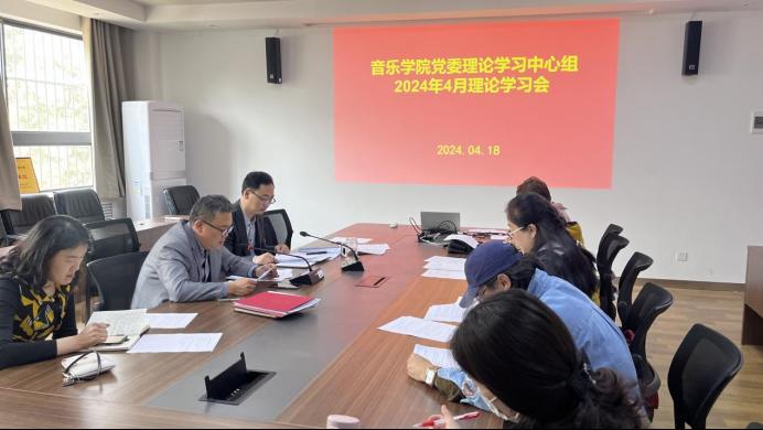 4月18日,音乐学院党委理论学习中心组召开2024年度4月集体学习会,主题学习贯彻习近平总书记在2024年春季学期中央党校(国家行政学院)中青年干部培训班开班之际作出的重要指示精神,音乐学院党委书记李建新主持学习会。