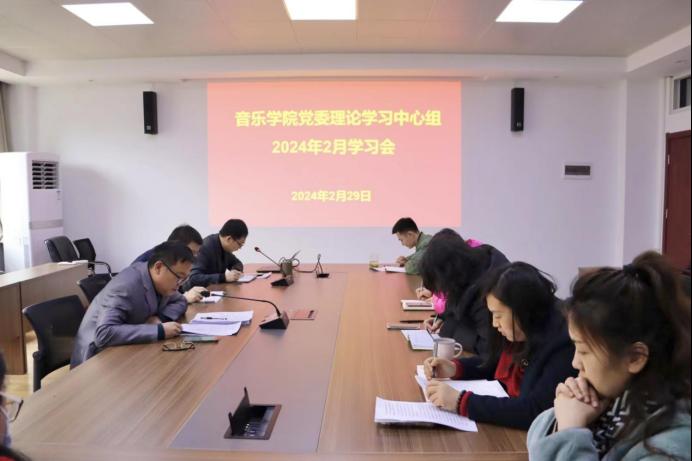 2月29日下午,音乐学院在德雅楼二楼会议室召开党委理论学习中心组2024年2月份集中学习暨研讨交流会,校党委组织员李升学以及学院领导班子、党委委员、系(所、中心)主任、各党支部书记等参会,会议由学院党委书记李建新主持。
