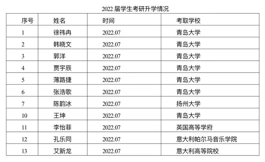 实习基地包括:青岛市艺术学校,各大琴行,青岛市老年大学,中小学等。
