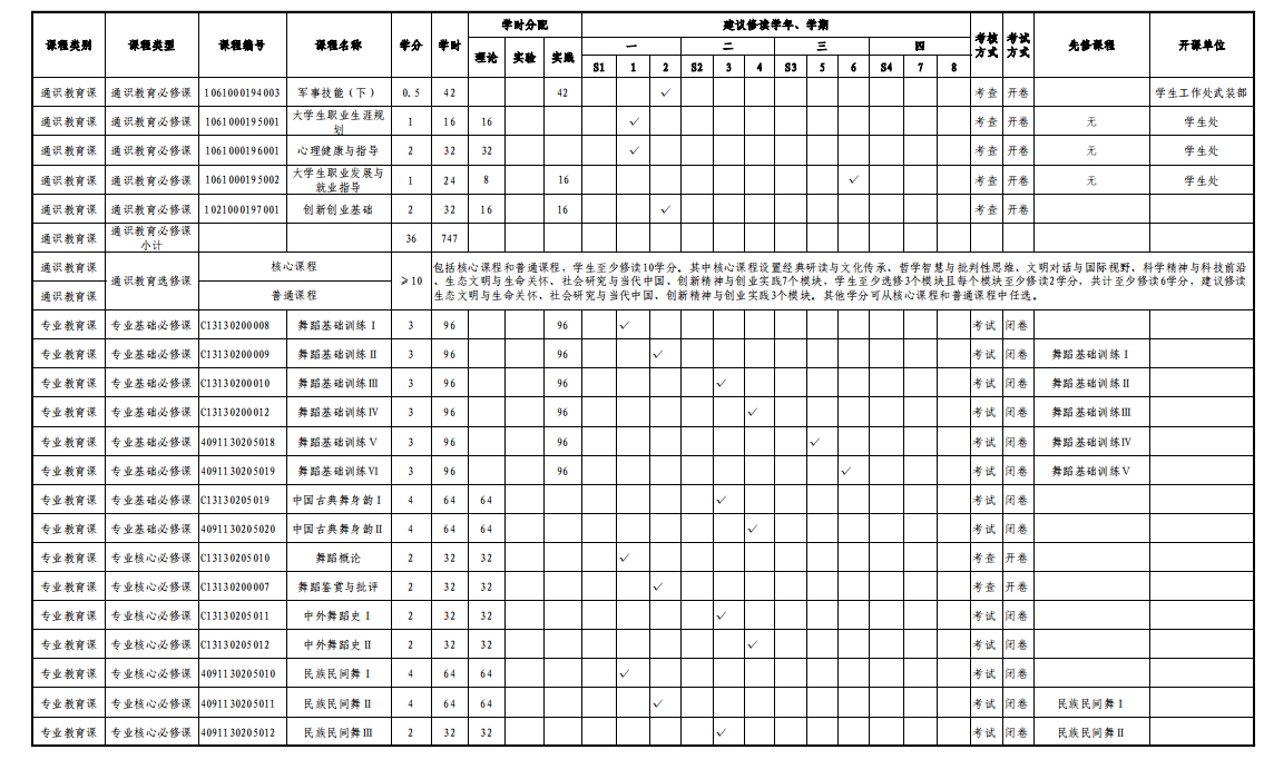 舞蹈学专业人才培养方案(130205)