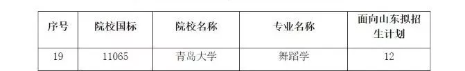 山东省2020年普通高校招生舞蹈类专业联考拟招生计划