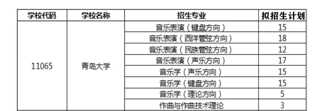 山东省2020年普通高校招生音乐类专业联考拟招生计划