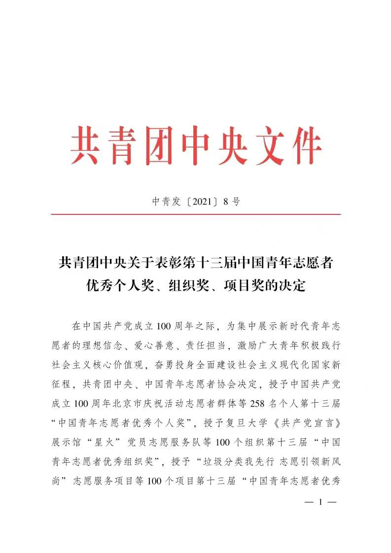 据悉,中国青年志愿者优秀个人奖、组织奖、项目奖由共青团中央、中国青年志愿者协会设立,自1996年以来已开展十三届评选表彰活动。本届表彰严格落实参评资格、条件和程序,注重面向基层和一线选树先进典型,注重对重大事件、重点领域中表现突出的个人、组织和项目的激励,展示新时代青年志愿者的理想信念、爱心善意、责任担当,引导广大团员青年在新时代新征程上奋勇建功立业。