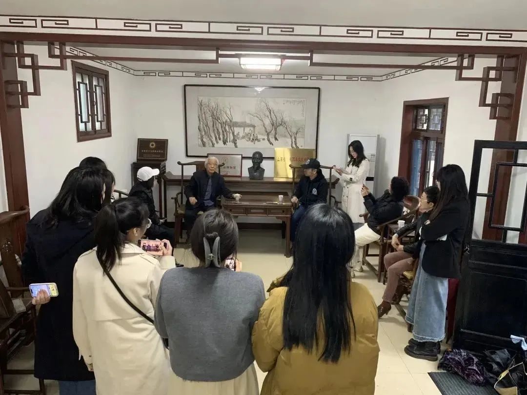 师生一行来到蒲松龄纪念馆采风,向聊斋俚曲国家级代表性项目传承人、蒲松龄纪念馆名誉馆长蒲章俊先生请教聊斋俚曲。