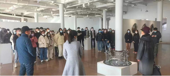 雕塑馆负责人首先介绍了此次本年度重要展览《公共空间艺术邀请展》的组织情况、艺术家构成和作品特色等相关内容。各位专业老师又依次对同学们提出了观展主题、观展目的等教学要求,并根据此次展览作品进行了具体的专业解读。