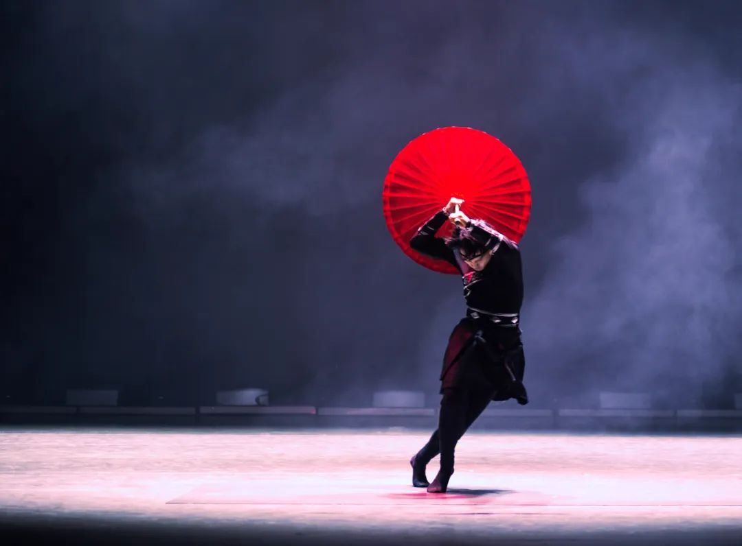 《侠骨伞影》是一部中国古典舞男子独舞作品。编导通过塑造亦正亦邪的侠客形象,传递流淌在中国人血液里的民族骨气。作品以褴褛的服装映射侠客的身份地位和野性气息,以舞蹈动作衬托侠客的豪迈气、孤傲气、江湖气。
